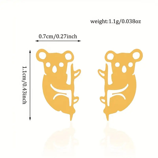 Stainless Koala Bear Post Earrings: Gold-Plated