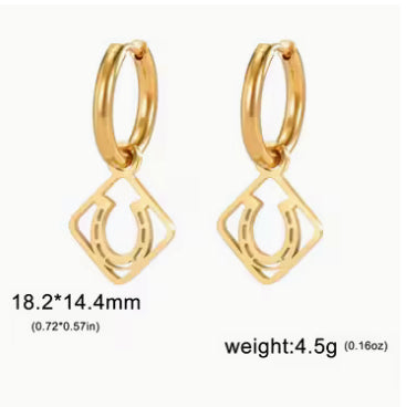 Stainless Steel w/Horseshoe Charm Hoop Earrings